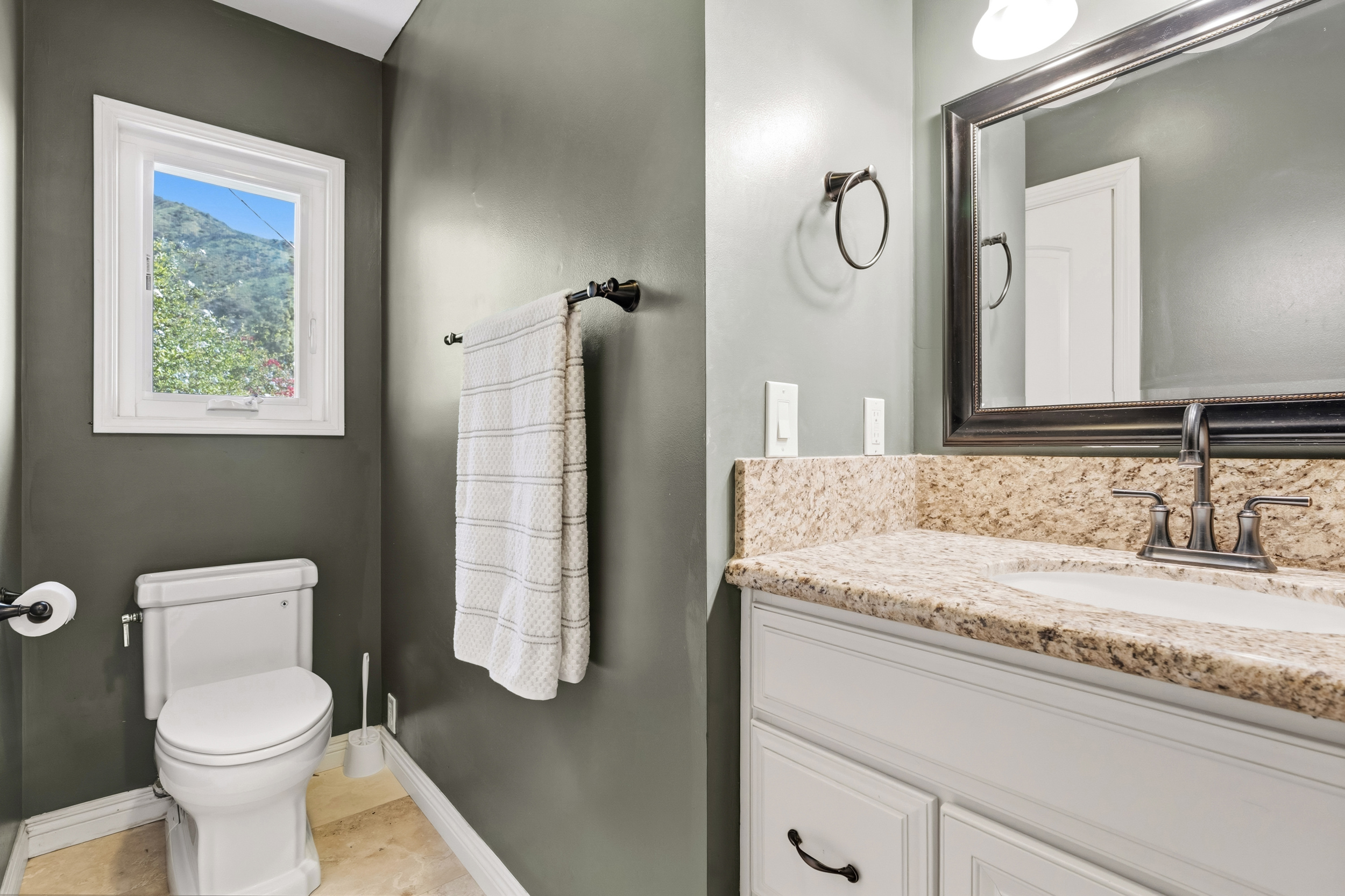Notable upgrades include engineered wood flooring on the lower level and in the primary suite, double-paned casement windows installed in 2014, see-through privacy roll-up shades, and a skylight in the stairwell that floods the space with natural light. The home is hard-wired for a security system (currently inactive), and the landscaped grounds feature both sprinkler and drip irrigation systems. The garage is also pre-wired for easy installation of an EV charger. You're only one offer away from calling this exceptional home your own